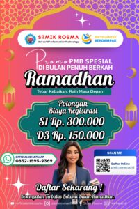 Saatnya wujudkan masa depan cerahmu bersama STMIK ROSMA – School of Information Technology. Ramadhan bukan hanya tentang berbagi kebaikan, tapi